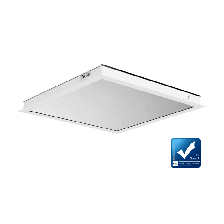 Le luminaire de surface avec possibilité d'encastrement dans des plafonds 60x60 (à l'aide du cadre/adaptateur KG) est particulièrement recommandé pour les espaces de bureau, les couloirs spacieux et les espaces publics.