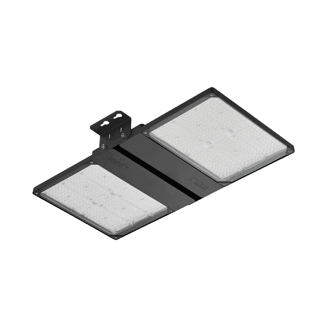 Luminaire HIGH-BAY de haute qualité avec source LED intégrée. Le corps est en aluminium moulé sous pression, revêtu de poudre de couleur gris anthracite (RAL 7016) et le support de montage est en acier revêtu de poudre. Un verre trempé de 5 mm d'épaisseur constitue son diffuseur. Equipé en standard d'un câble H07RN-F de 0,9m avec des connecteurs supplémentaires mâles et femelles.