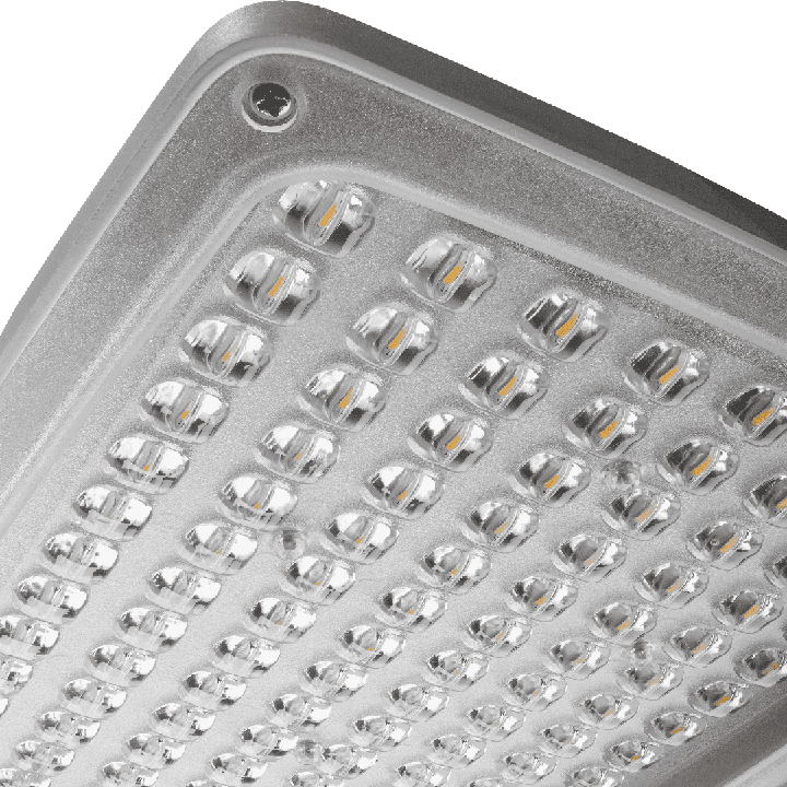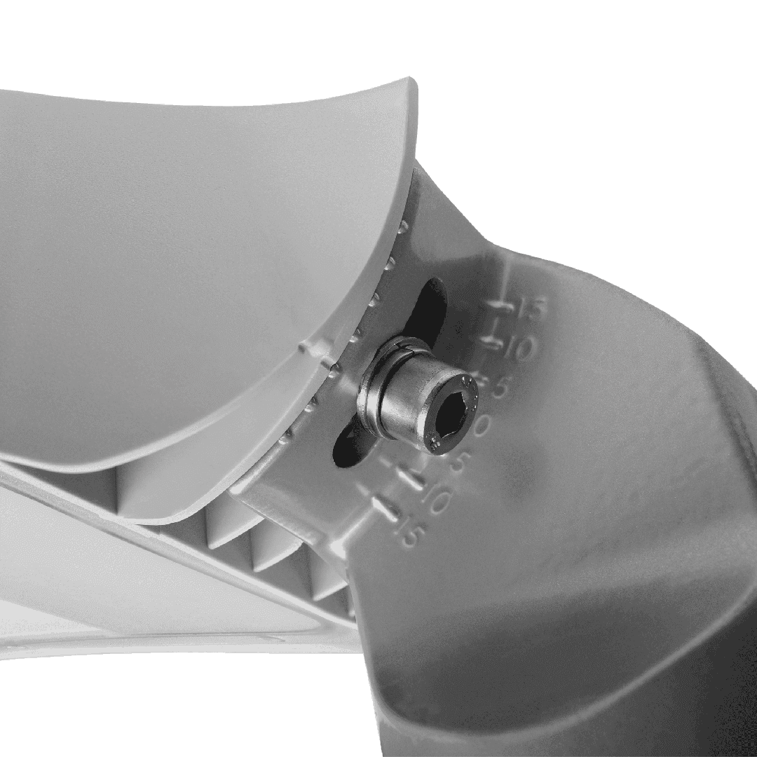 Luminaire routier àLED à haute efficacité lumineuse (jusqu’à153 lm/W) et panneau LED intégré à faible consommation d'énergie. Corps autonettoyant en polypropylène (PP) avec fibre de verre (FG), poignée en aluminium. Des matrices de lentilles directionnelles (en polycarbonate PC) sont utilisées dans le luminaire. Le luminaire se caractérise par un degré de protection élevé IP66 et une résistance aux chocs mécaniques IK08 (anti-vandalisme). La poignée intégrée, réglable par incréments de5degrés permet la régulation entre de -5° à+15° (en haut, sur poteau) ; -15° à+5° (latéral, sur flèche). Équipé en standard d'un câble H07RN-F d’une longueur 0. 7m équipé d'un raccord rapide IP66. Les luminaires de la classe de protection II ne doivent être montés que sur un mât métallique.