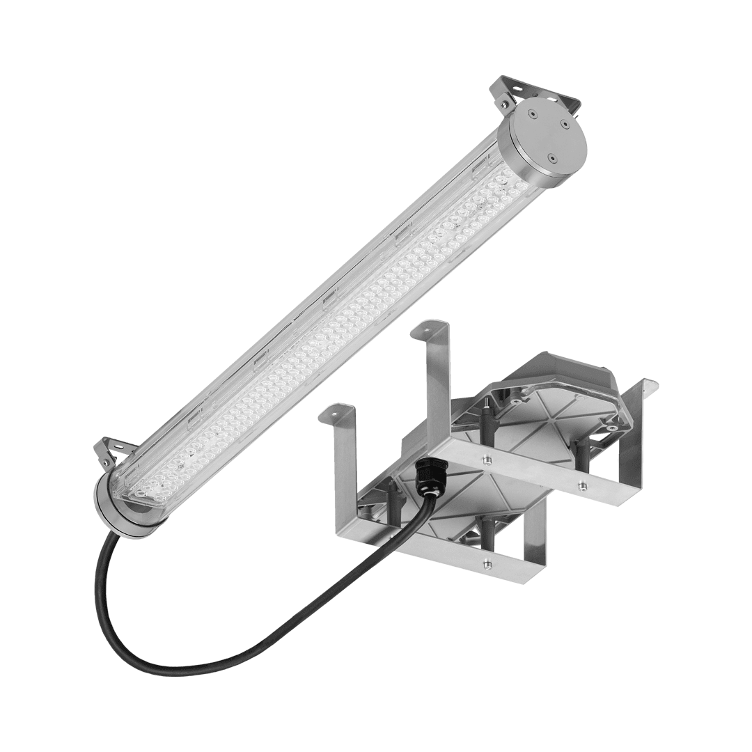 Le Tuba IP69K Endura est un luminaire cylindrique destiné à des tâches spéciales, là où d'autres solutions échouent. La version Endura, avec un boîtier d'alimentation séparé, est conçue pour des conditions de température extrêmes, jusqu'à 50 (70) °C. Elle combine une étanchéité maximale, une résistance chimique et une durabilité mécanique. La conformité à la norme IP69K garantit une protection totale contre la poussière (IP6X) et une résistance complète à l'eau sous très haute pression (100 bars) à 80 °C (IPX9K). Ce luminaire est donc idéal pour les zones nécessitant un nettoyage intensif, notamment à l'aide de jets d'eau puissants et de détergents.