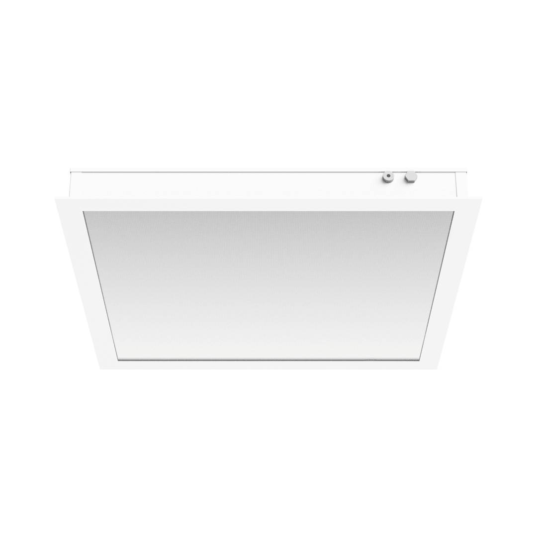 Luminaire spécialisé de type « Cleanroom », destiné aux salles blanches présentant une classe de pureté de l'air ISO 3 à 9, conformément à la norme ISO 14644-1:2015 « Cleanroom », et répondant à des exigences accrues en matière d'hygiène et de stérilité. La version SW R est destinée à être montée dans des plafonds renforcés.