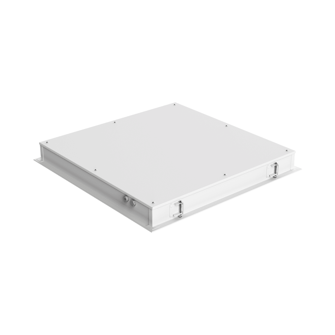 Lumedic SW R il s'agit d'un luminaire spécialisé de type « Cleanroom », destiné aux salles blanches présentant une classe de pureté de l'air ISO 3 à 9, conformément à la norme ISO 14644-1:2015 « Cleanroom », et répondant à des exigences accrues en matière d'hygiène et de stérilité. Sa conception garantit une facilité d'entretien et une résistance mécanique et environnementale élevée. Son boîtier robuste en acier, avec un indice de protection IP65 côté pièce et côté espace technique, garantit une étanchéité totale dans un environnement stérile, tout en permettant une libre circulation de l'air au-dessus du plafond suspendu. L'accès pour l'entretien se fait depuis l'espace technique (révision par le haut), ce qui permet d'effectuer la maintenance sans intervenir dans la salle blanche.