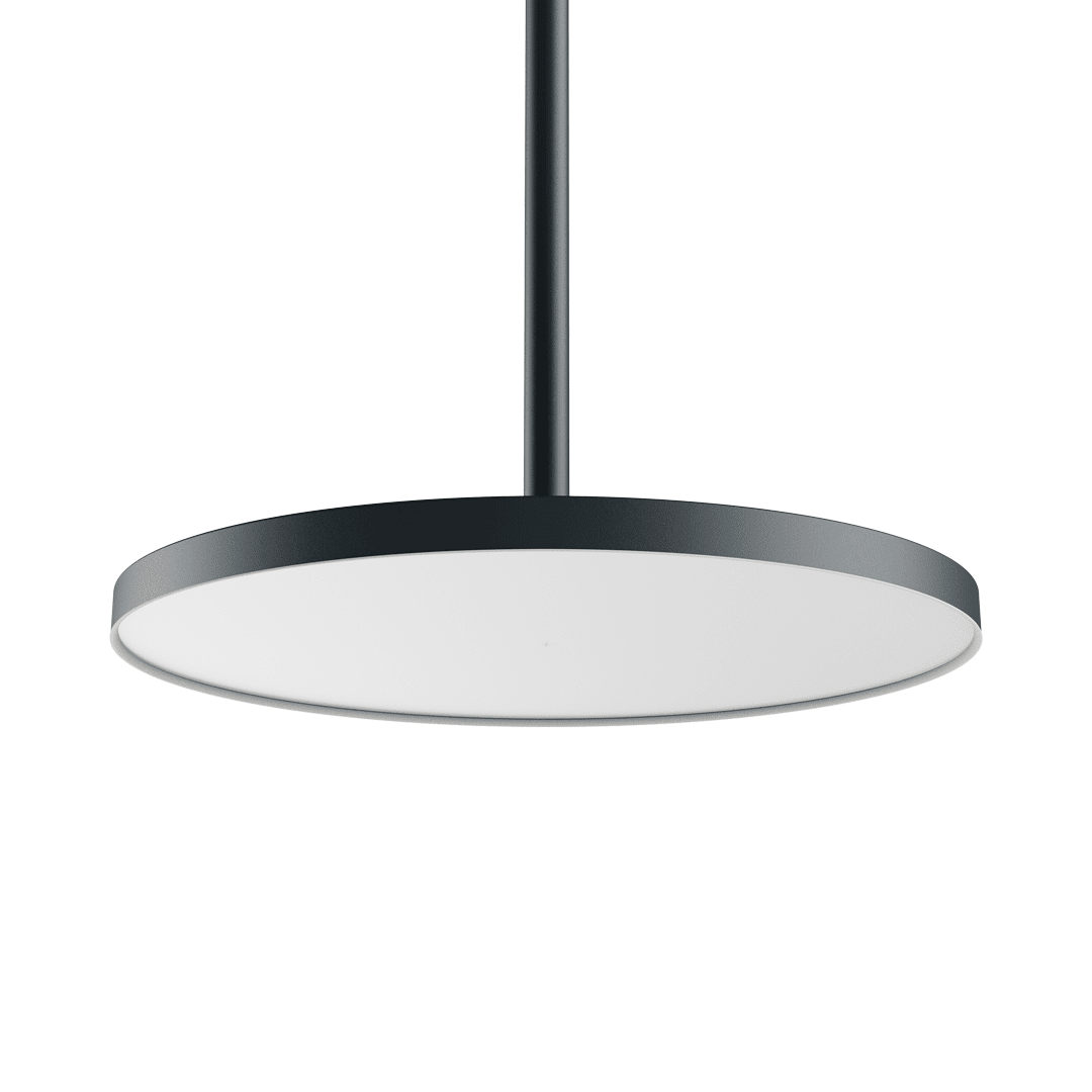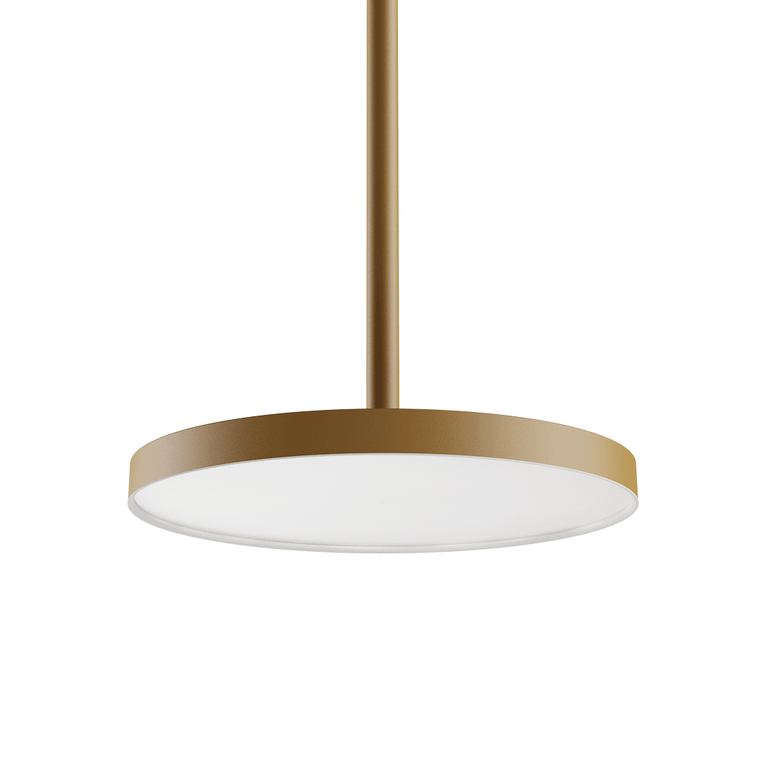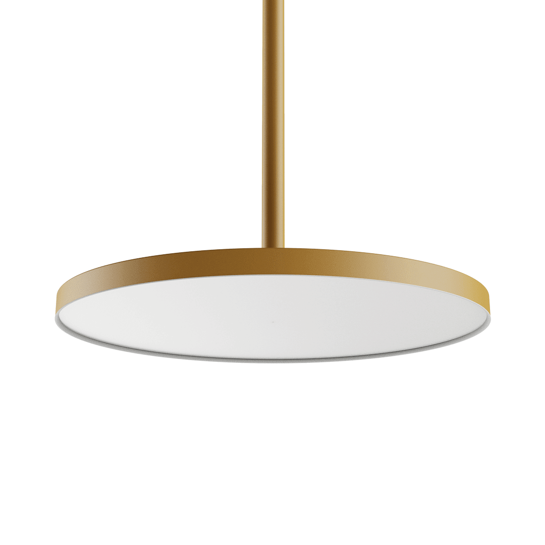 Chaque forme conserve un langage de conception cohérent – le même rythme, le même caractère de lumière. Le luminaire offre une lumière d'une température de couleur de 3000 K et un indice de rendu des couleurs Ra ≥ 90, ce qui garantit un rendu naturel des couleurs et une impression lumineuse agréable. Les puissances disponibles (10 W / 19 W / 38 W) permettent d'adapter l'intensité lumineuse à la taille de l'intérieur : 1000 lm – lumière d'ambiance, 1900 lm – éclairage général, 3900 lm – lumière architecturale. La commande DALI ou classique on/off permet un contrôle total de l'ambiance de l'espace. Le corps en aluminium peint par poudrage, fabriqué avec précision, et le diffuseur en PC laiteux forment un duo alliant durabilité et légèreté. La collection est disponible en quatre teintes raffinées : Or RAL1036 – une touche chaleureuse et luxueuse, Gris RAL7016 – subtil et architectural, Blanc RAL9016 – pur et intemporel, Noir RAL9005 – contraste profond et élégance. Chaque couleur a été choisie pour s'harmoniser avec les matériaux modernes : béton, bois, verre et tissus à la texture naturelle.