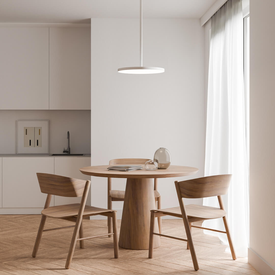 Une forme élancée et épurée. Des proportions parfaites. Une lumière qui s'intègre à l'architecture. La série Snob est la quintessence du design minimaliste, où chaque détail a son importance, de l'aluminium usiné avec précision au diffuseur laiteux qui diffuse subtilement la lumière. Trois diamètres – Ø260, Ø375, Ø550 mm – permettent de composer des luminaires en arrangements rythmiques ou individuels. Avec une profondeur de seulement 30 mm, la lampe est d'une légèreté visuelle exceptionnelle, donnant l'impression que la lumière jaillit de la surface même du plafond ou du mur. Grâce à cette subtilité, Snob s'inscrit parfaitement dans les principes de l'architecture « quiet design », où l'éclairage est présent mais discret.