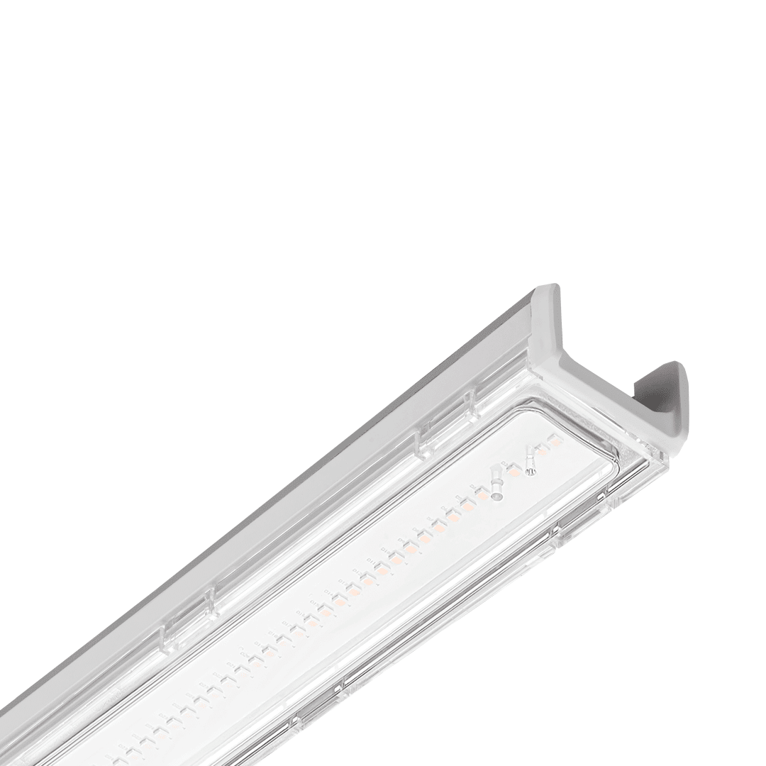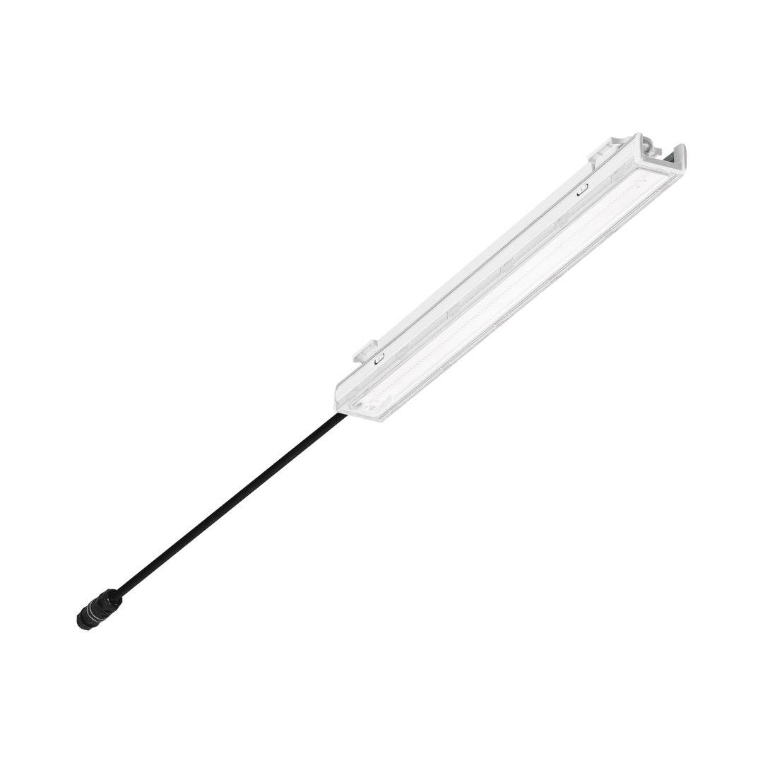 La désignation RAPID indique un montage encore plus rapide (par rapport aux luminaires hermétiques classiques à ouverture) grâce à un câble de 0,6 m de long sortant directement du luminaire et terminé par un connecteur rapide étanche. Cela permet de brancher l'alimentation sans avoir à ouvrir la lampe. Le luminaire peut toujours être ouvert pour les besoins de maintenance. Les versions traversantes ont deux câbles de même conception. Les composants fiables utilisés dans la lampe minimisent les besoins d'entretien. La lampe Tytan Steel LED Rapid est fabriquée en acier, ce qui lui confère une résistance exceptionnelle, et grâce à la conception de son profil en forme de U, elle conserve la légèreté caractéristique des luminaires en plastique, ce qui facilite son installation et n'alourdit pas les structures porteuses.