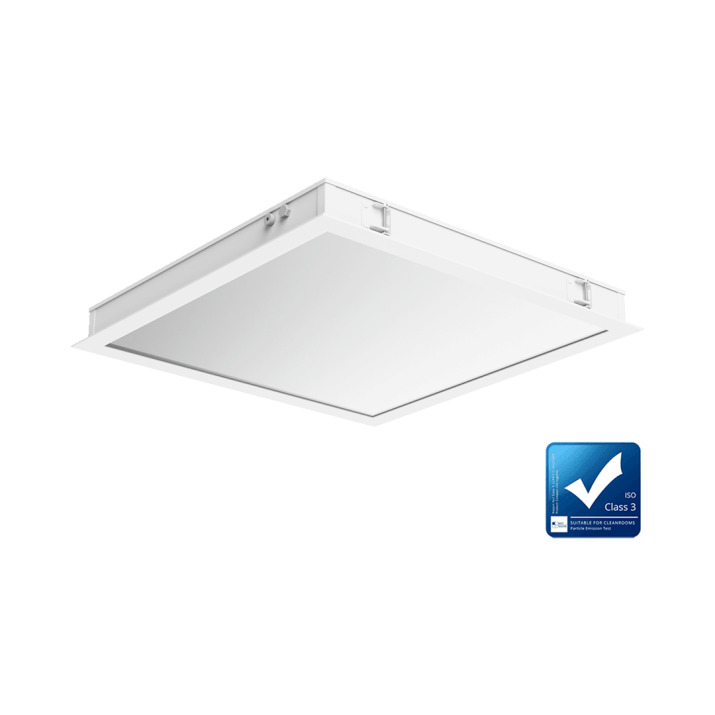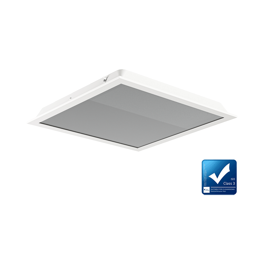Lumedic SM est un luminaire spécialisé de type Cleanroom, conçu pour les salles blanches soumises à des exigences élevées en matière d'hygiène et de stérilité. Sa conception garantit une facilité d'entretien ainsi qu'une grande résistance mécanique et environnementale. Son boîtier robuste en acier, doté d'un indice de protection IP65 tant du côté de la pièce que du côté de l'espace technique, assure une étanchéité totale dans un environnement stérile, tout en permettant une libre circulation de l'air au-dessus du plafond suspendu.