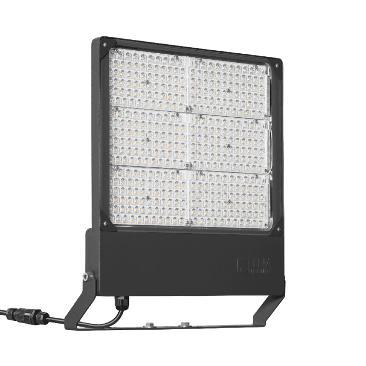 Le luminaire est conçu pour éclairer les espaces ouverts: parkings, places, installations sportives.