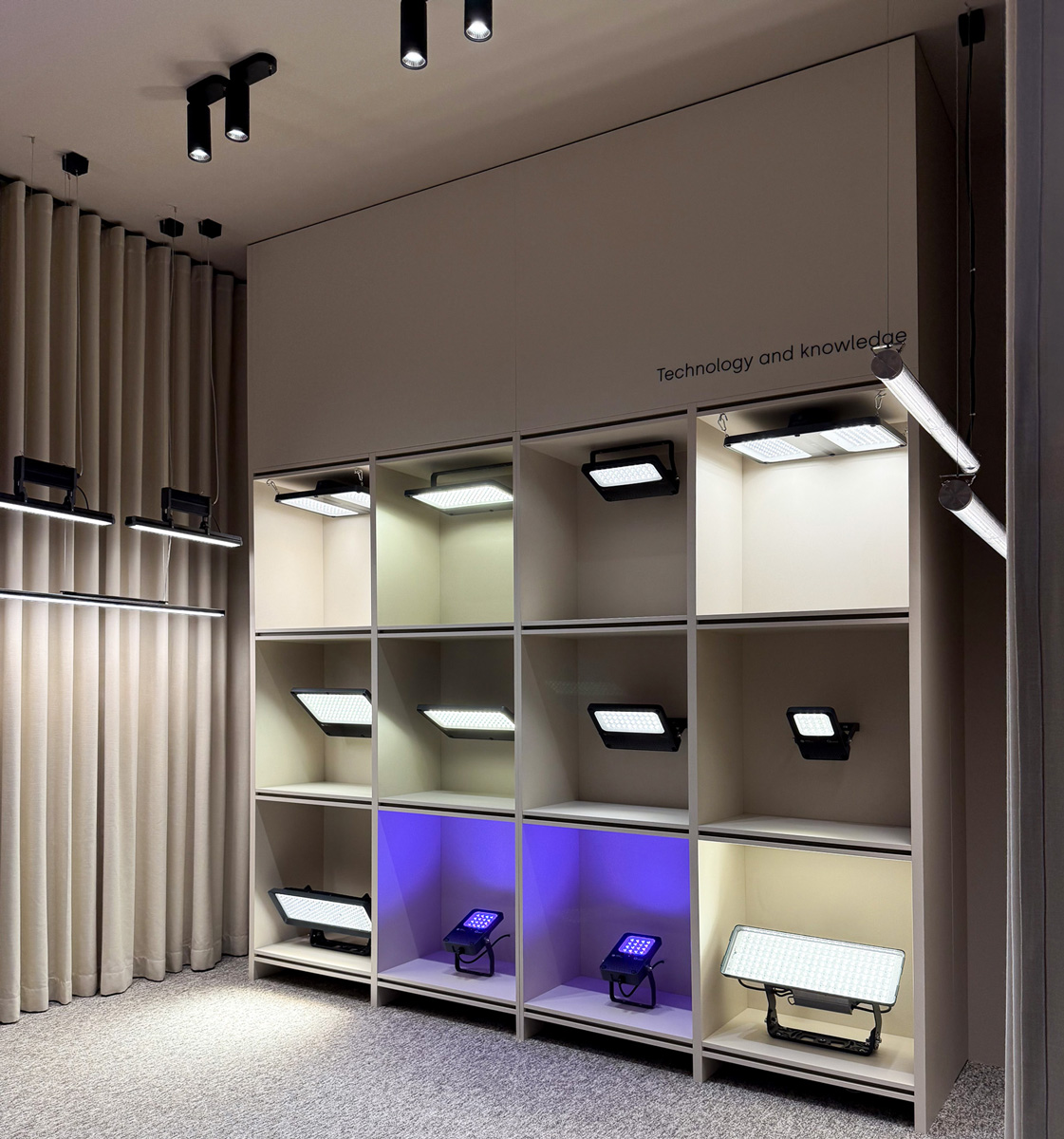 Notre exposition comprend notamment les lampes industrielles Tytan Steel LED, Tuba IP69K, Quest LED EVO, la gamme de lampes de bureau Baris Stand et Baris 52 LED, ainsi que les lampes acoustiques Terra Balance, mais aussi des nouveautés qui viennent élargir notre gamme. Parmi celles-ci, on trouve des propositions telles que Factor XL, un projecteur haute performance pour les bâtiments exigeants, notamment les installations sportives, Linero LED, un luminaire linéaire hermétique de type High-Bay à thermique optimisée, ainsi que Skver LED PRO, des luminaires modulaires pour l'éclairage des espaces publics. Parmi les nouveautés, nous présentons également Expo Modular, un projecteur à montage en saillie ou sur rail avec source LED, sans émission UV ni IR, offrant de nombreuses possibilités de personnalisation en termes d'optique, d'angles d'éclairage et de finitions.