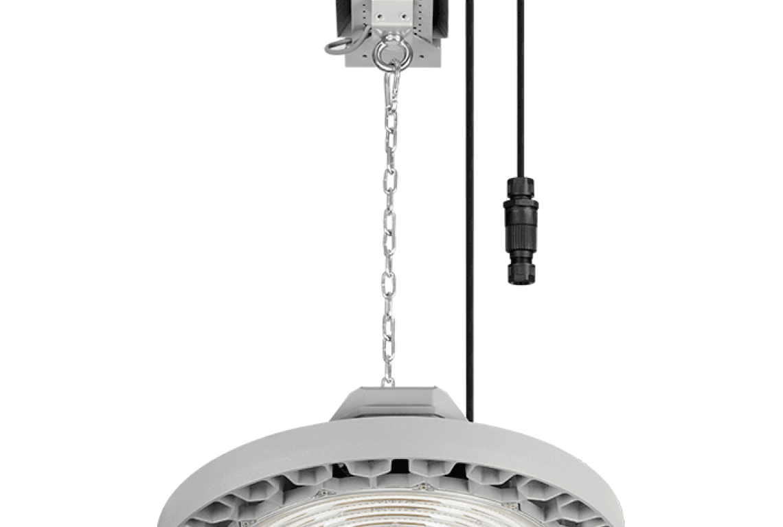 OCULUS LED a d'excellents paramètres et une conception solide. Grâce à l'utilisation de diodes à haut rendement, il se distingue par un flux lumineux très élevé jusqu'à 49 200 lm et une efficacité lumineuse jusqu'à 176 lm/W. Il est fabriqué en aluminium moulé sous pression, ce qui le rend très durable et résistant aux chocs (IK09).